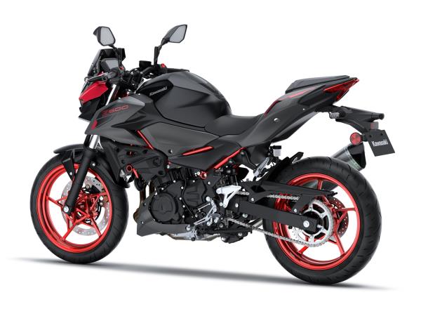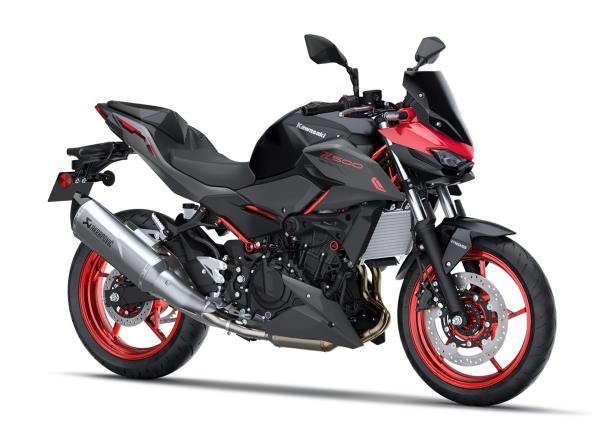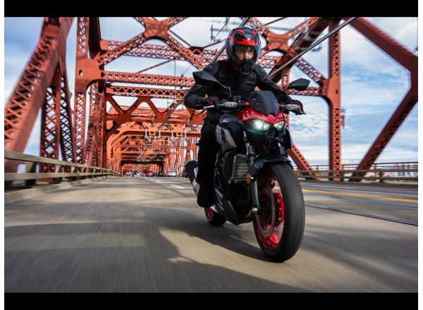 The new Z500 has a sharp, aggressive style and retains the large-volume design of other bikes in the Z series to create an aggressive, agile, street-oriented look. Its muscular, athletic bodywork reflects its performance while forming a flowing design that appears to float above the engine. Like other models in the Z Series, sugomi design elements (crouching stance, lowpositioned head and upswept tail) give it a silhouette instantly recognisable as a Kawasaki Supernaked.