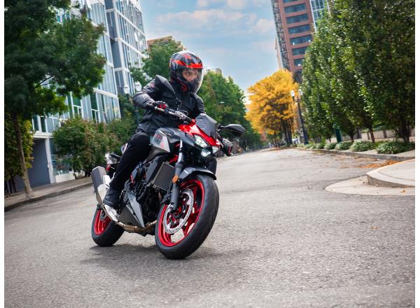 Ample power from the 451 cm3 engine is available through the entire rpm range to make it easy for riders to use, no matter what kind of riding they are doing, from low-end power for accelerating off the line in the city to top-end revs for riding on the highway. The engine in the new Z500 is up the task, no matter what it may be.
