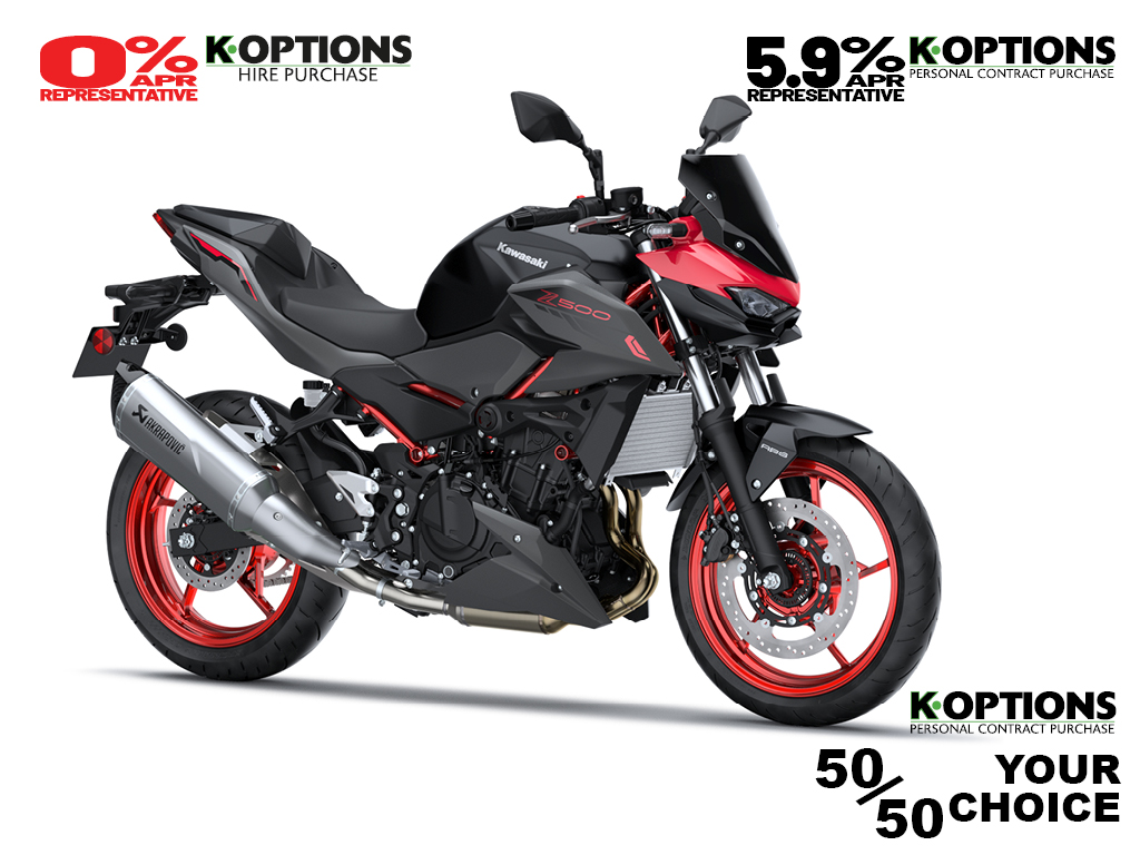 No matter from what angle the Z500 is seen, its triple headlightcentred front face and aggressive lines make it clear that this is a member of the Z family, with aggressive Supernaked looks and ample street presence.