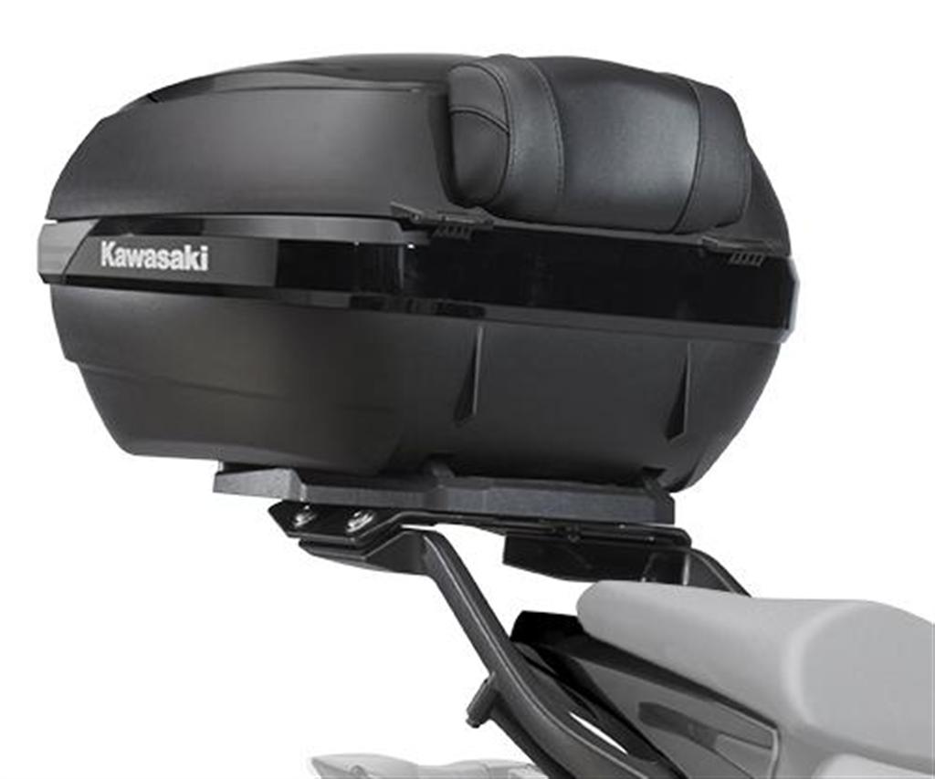 Top case providing a spacious 47 litres of storage space. Will fit two of most full face helmets. Matching cover in bike color to be ordered separately, as well as the anodized aluminium deco plate. Bracket has lateral movement damping mechanism for improved reliablity.