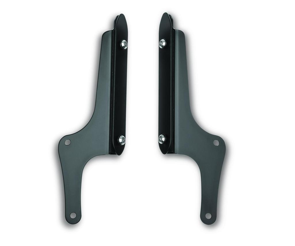 This 3 part Kawasaki windshield kit can be fitted to the front fork without removing fork legs. Clear windshield with black finish brackets.